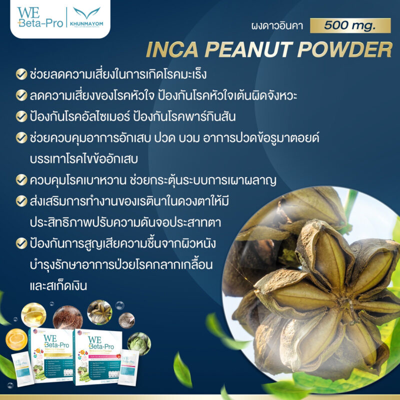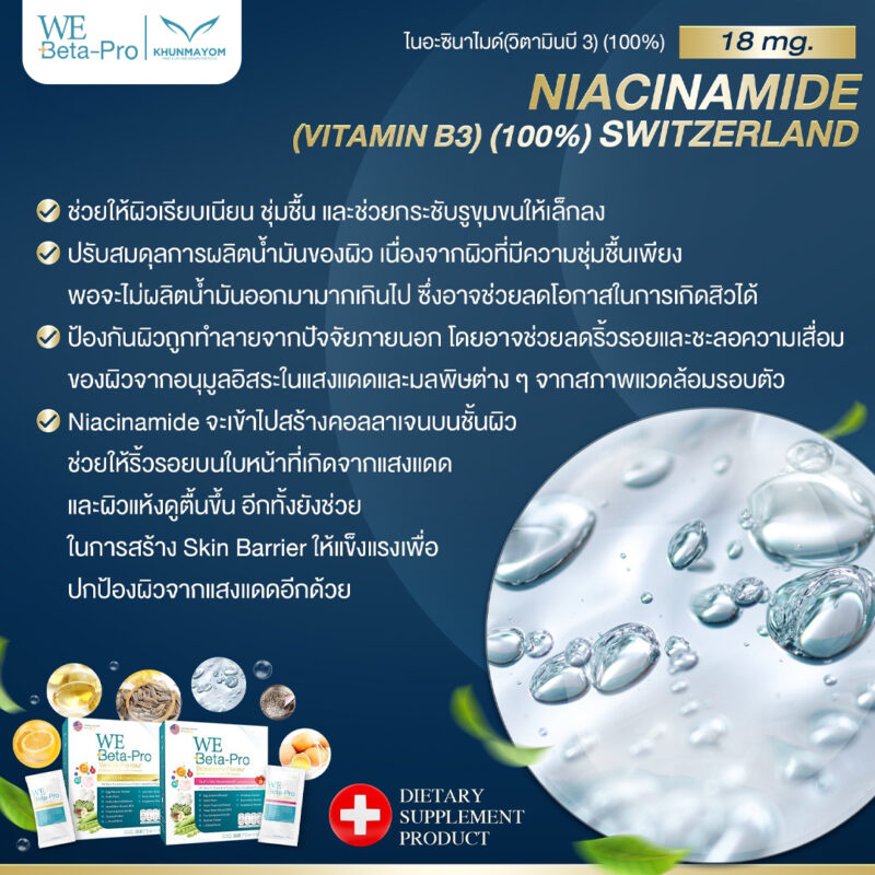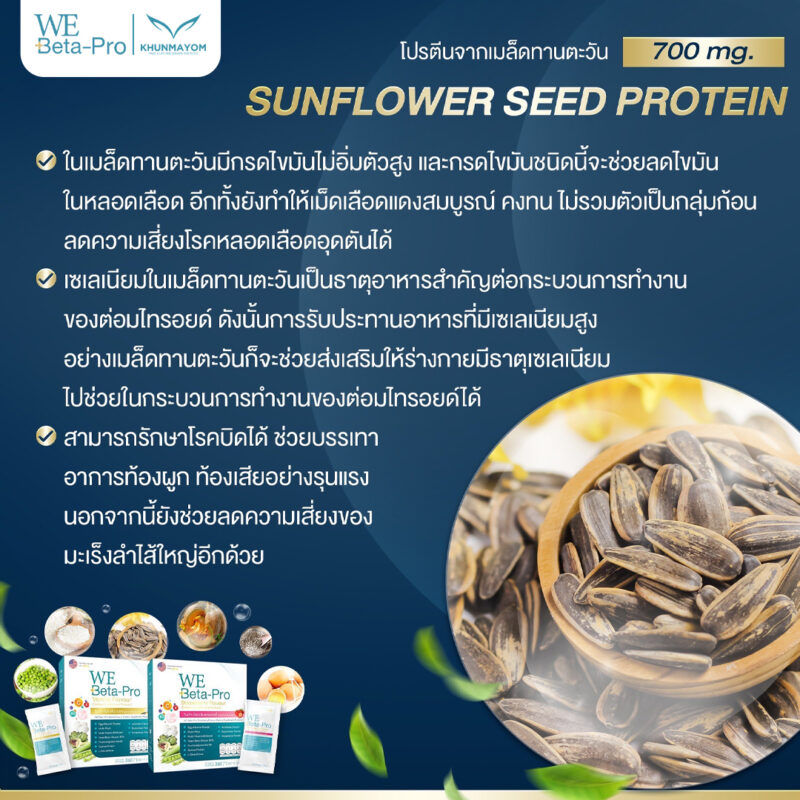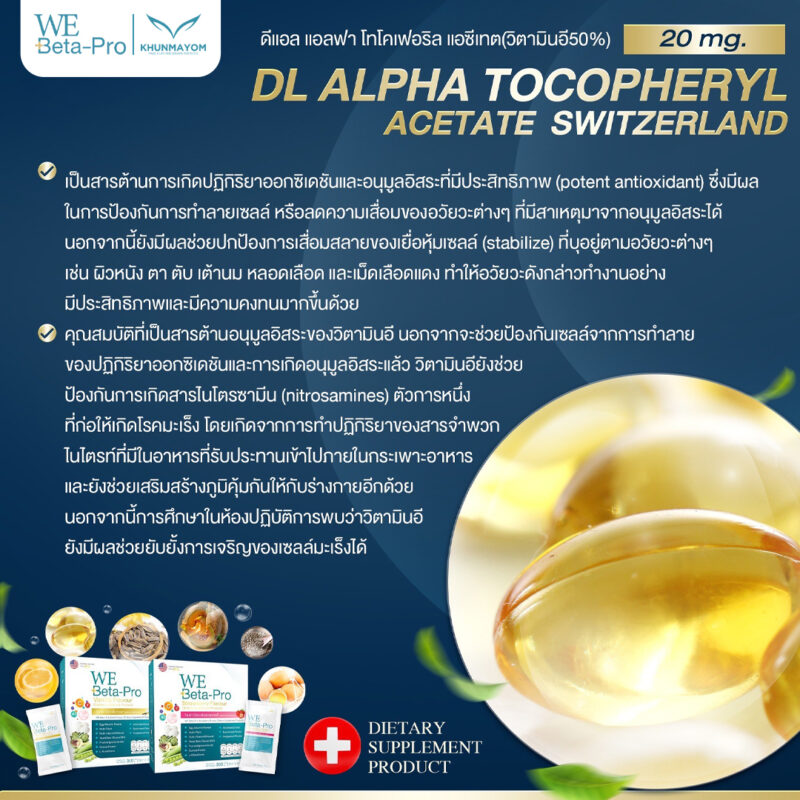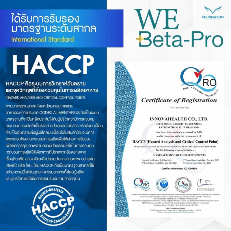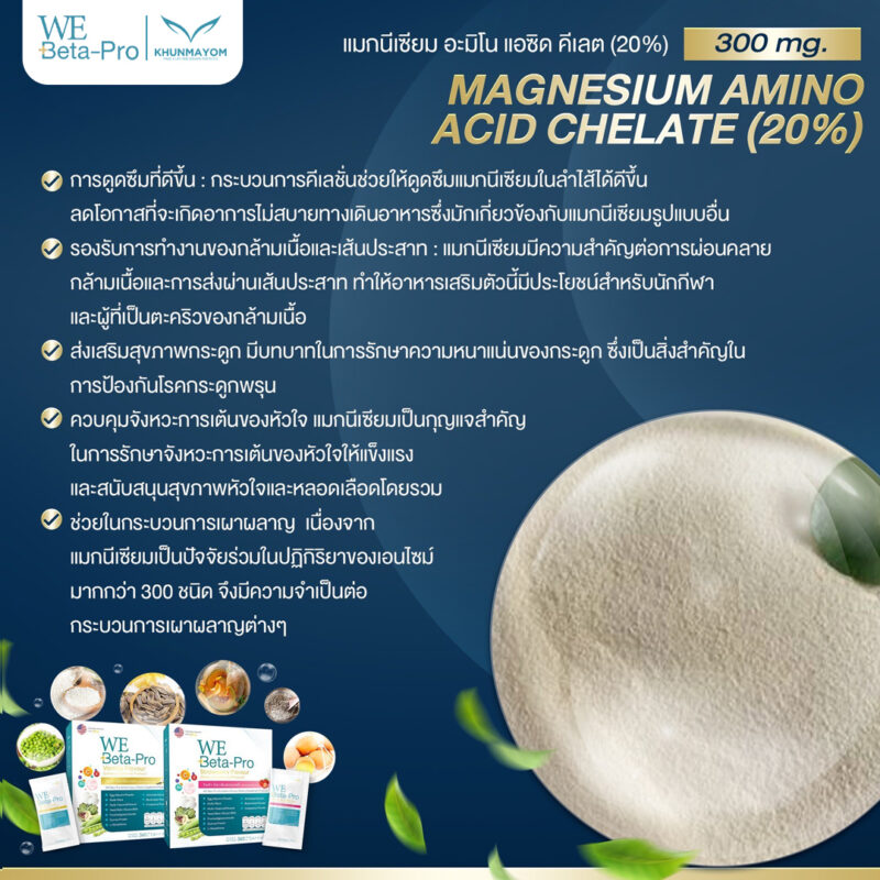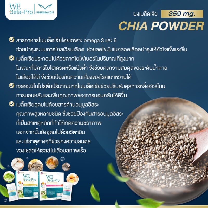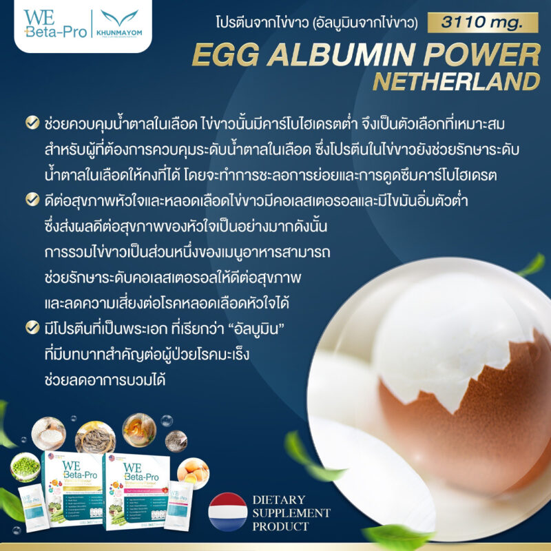 - We Beta Pro (วีเบต้าโปร) มีสารสกัดจาก เบต้ากลูแคน ซึ่งมีผลงานวิจัยมากมายหลายฉบับ ทั้งในประเทศและต่างประเทศ ว่ามีส่วนช่วยในการเพิ่มค่าการทำงานของเซลล์เม็ดเลือดขาว ได้เป็นอย่างดี เหมาะสำหรับผู้ป่วยที่ต้องการเพิ่มภูมิต้านทานให้กับร่างกายโดยเฉพาะ เช่น ผู้ป่วยโรคติดเชื้อ ผู้ป่วยโรคเบาหวาน ผู้ป่วยมะเร็งต่างๆ มีความจำเป็นต้องได้รับโปรตีนปริมาณสูงเพื่อช่วยเสริมทั้งเม็ดเลือดขาวและเม็ดเลือดแดง จึงจะช่วยให้ร่างกายแข็งแรงขึ้นได้ ป้องกันภาวะร่างการอ่อนเลีย อ่อนแรง เนื่องจากภูมิคุ้มกันต่ำ